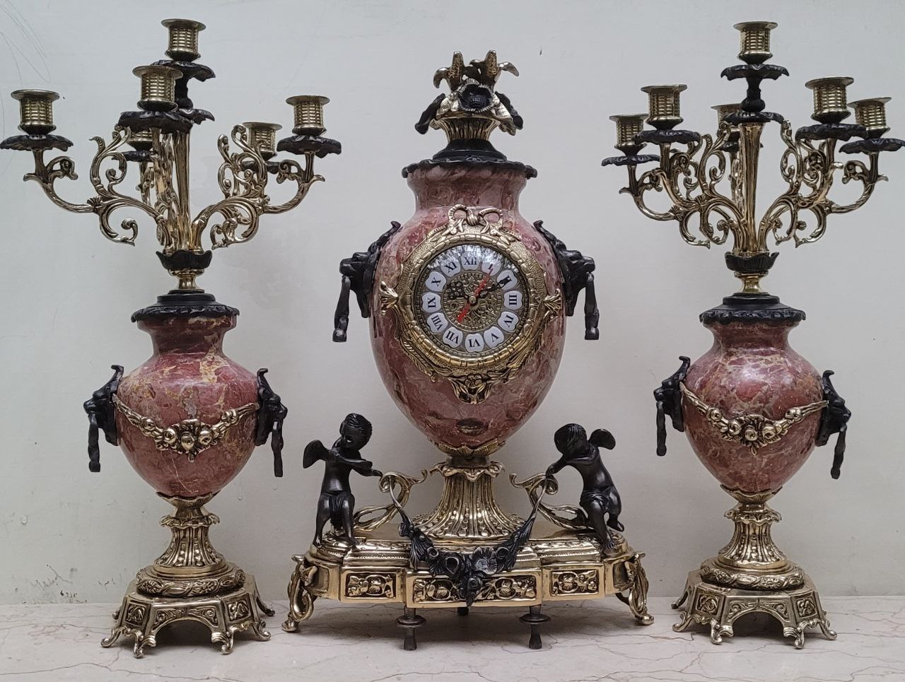ساعت شمعدان کوزه ای جنس برنج با کیفیت مستر با ضمانت رنگ و ابکاریقلم کاری تمیز در رنگها و طرحهای مختلفدر رنگها و طرحهای مختلفبا ضمانت رنگ وابکاری